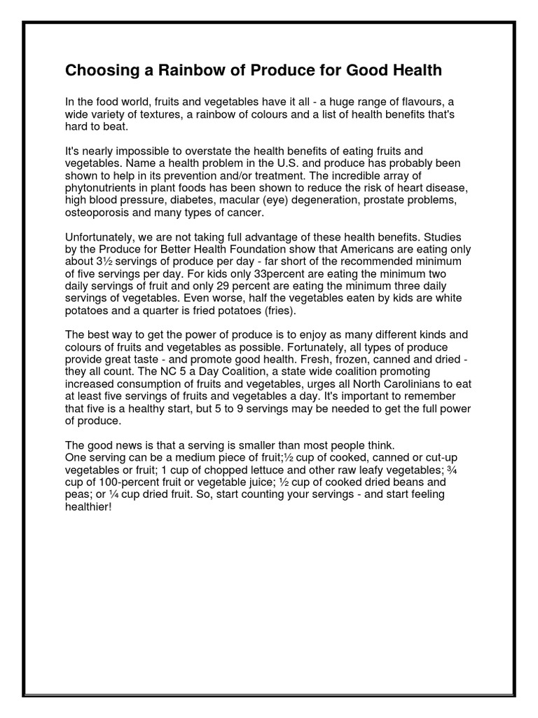 at least five servings of fruits and vegetables a day. It's important to remember