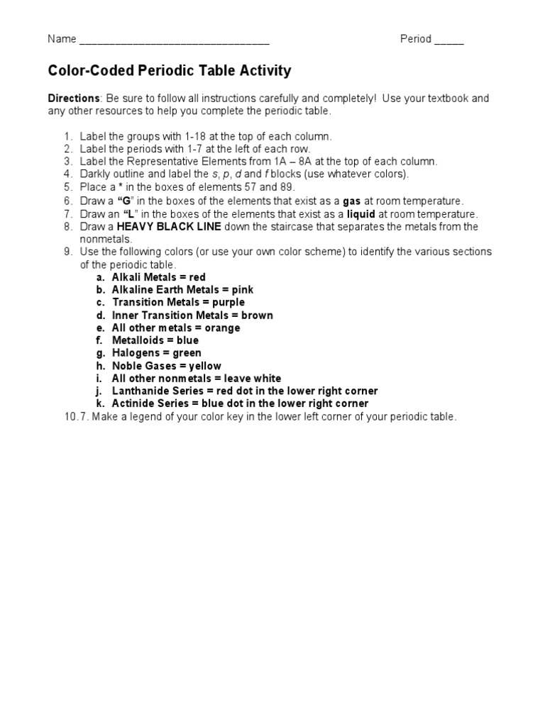 10. 7. Make a legend of your color key in the lower left corner of your periodic table.