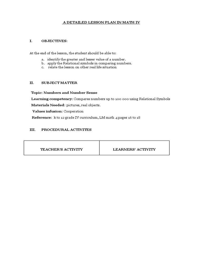 A DETAILED LESSON PLAN IN MATH IV