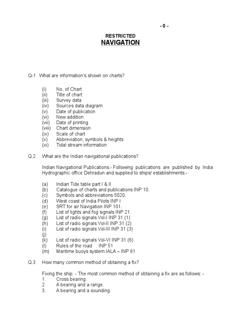 Fixing the ship: - The most common method of obtaining a fix are as follows: -