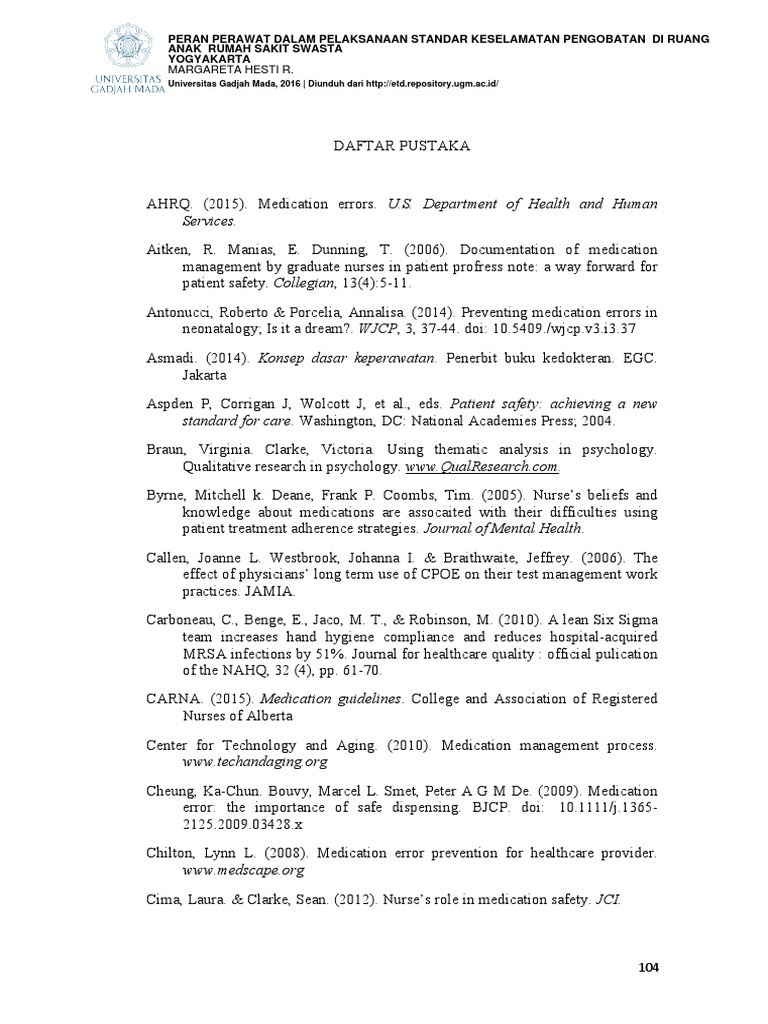 Kuntarti, Kuntarti. (2006). Tingkat penerapan prinsip “ enam tepat” dalam