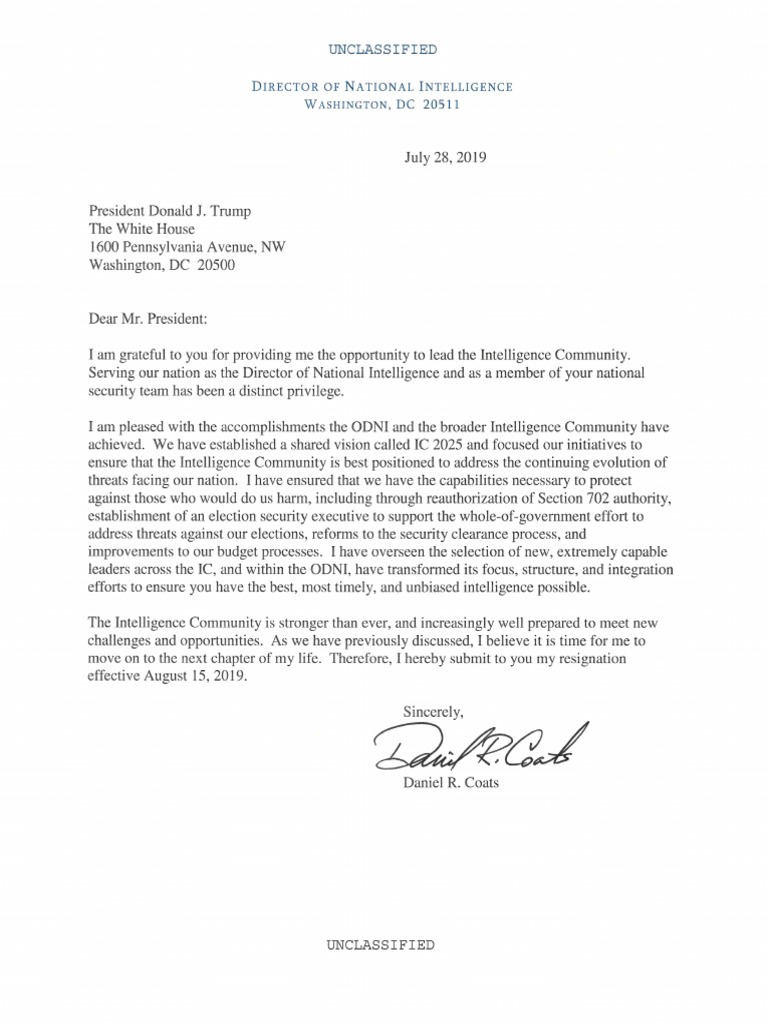 am grateful to you for providing me the opportunity to lead the Intelligence Community.