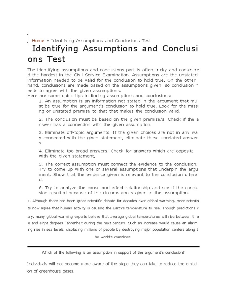 d the hardest in the Civil Service Examination. Assumptions are the unstated