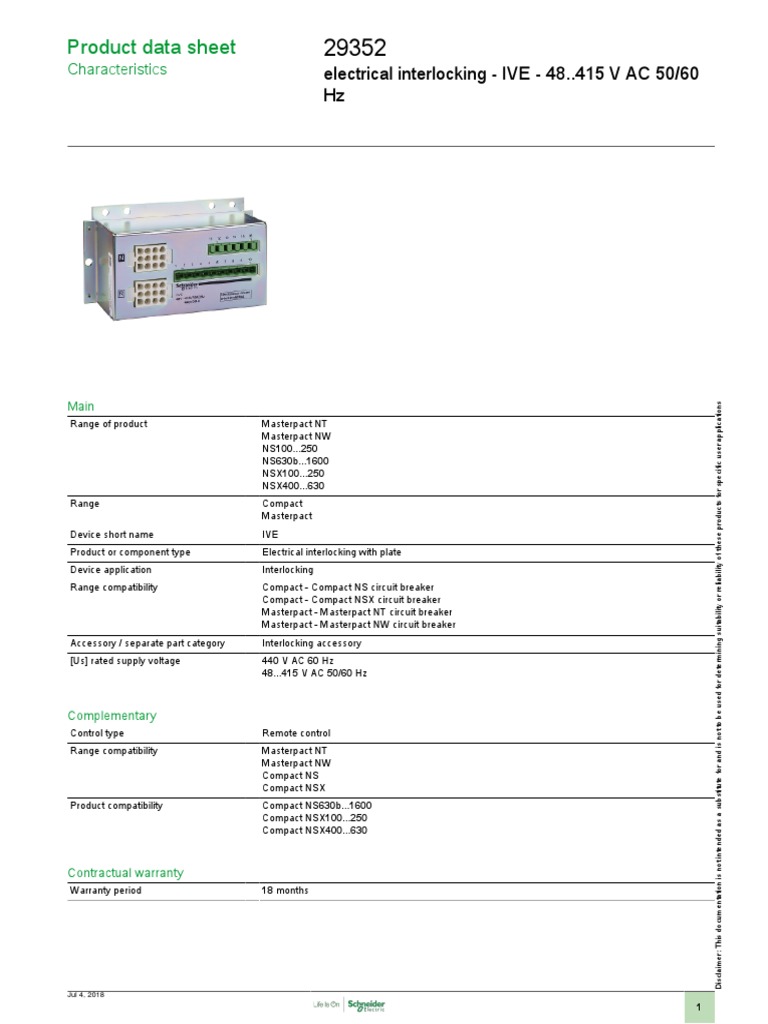 Characteristics electrical interlocking - IVE - 48..415 V AC 50/60