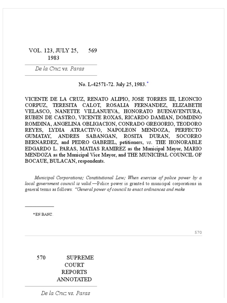 VOL. 123, JULY 25, 1983 569: de La Cruz vs. Paras