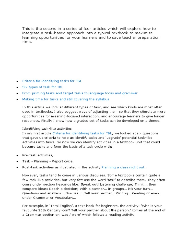 in Criteria for identifying tasks for TBL and you can also build up a graded set of