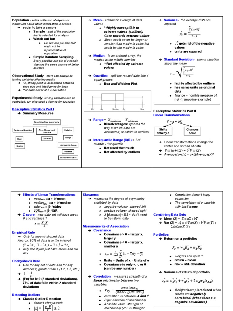 0 ≤ P rob(A) ≤ 1 P (A and B) = P (B|A) P (A) E M V = X 1 (P 1 ) + X 2 (P 2 )... + X n (P n )