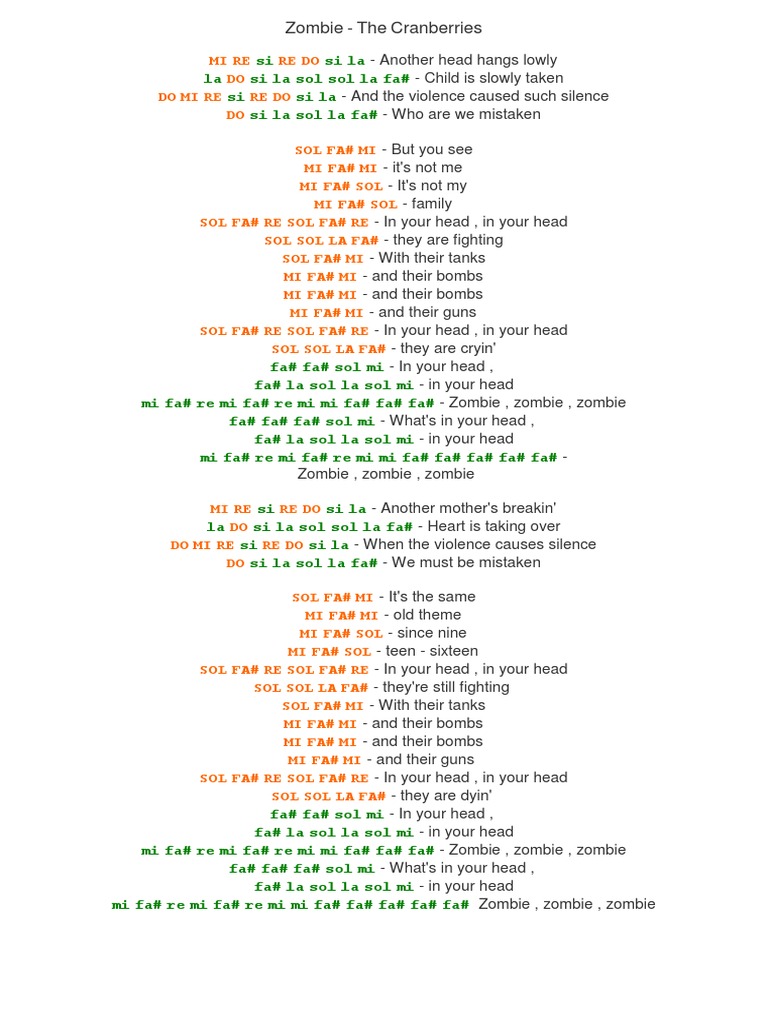mi fa# re mi fa# re mi mi fa# fa# fa# fa# fa# Zombie , zombie , zombie