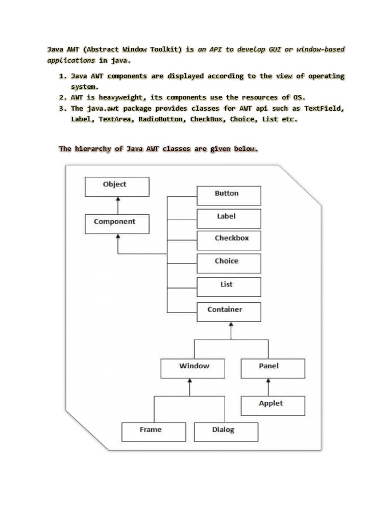 Java AWT (Abstract Window Toolkit) is an API to develop GUI or window-based