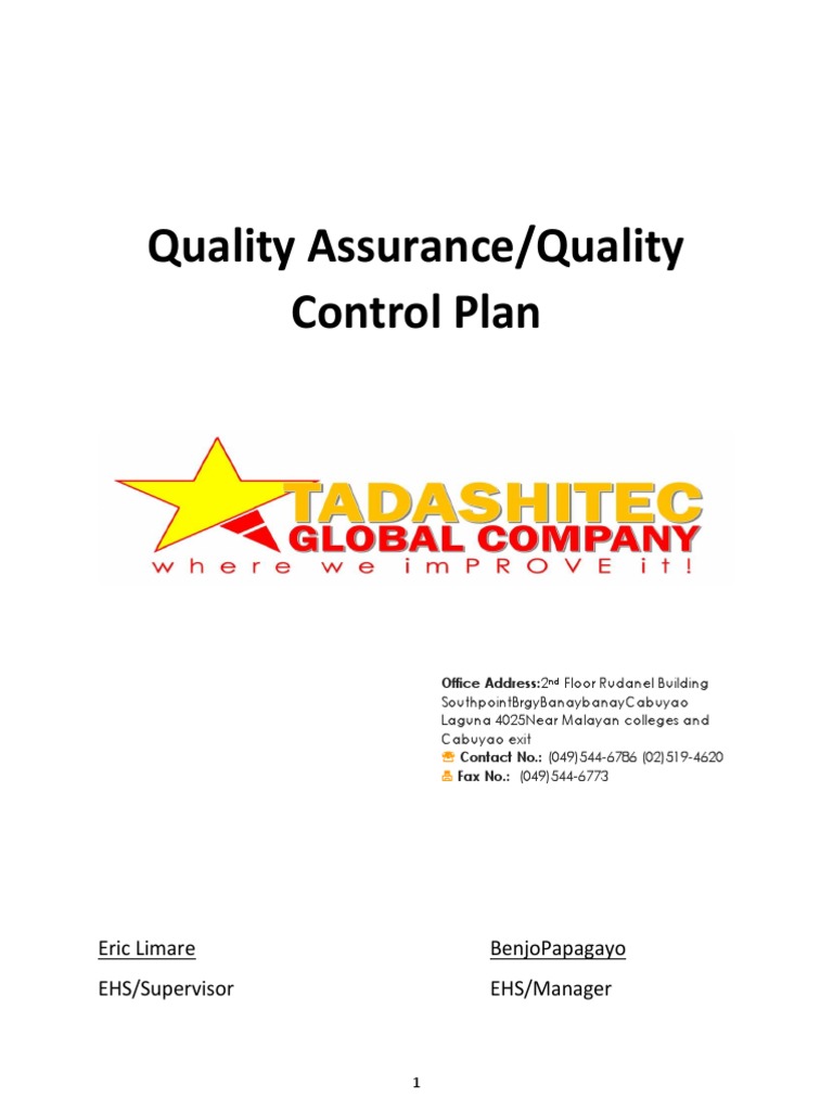 The purpose of this QA/QC Plan is to provide guidance and measures to be