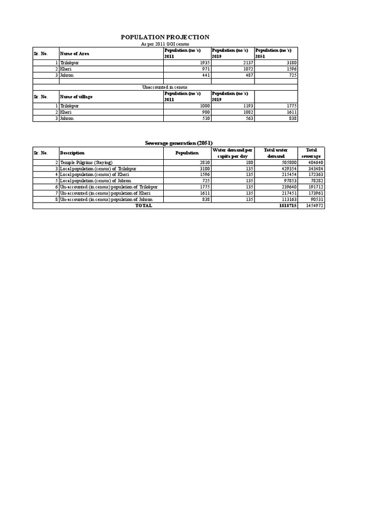 Sr. No. Description Population