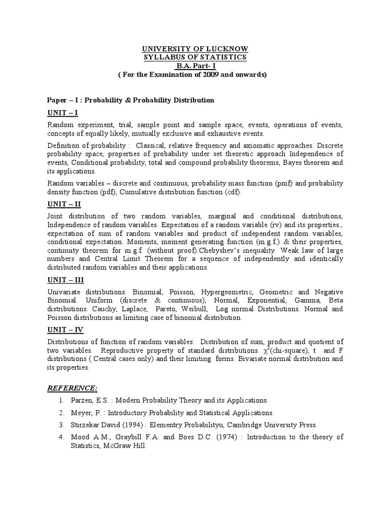 SYLLABUS OF STATISTICS