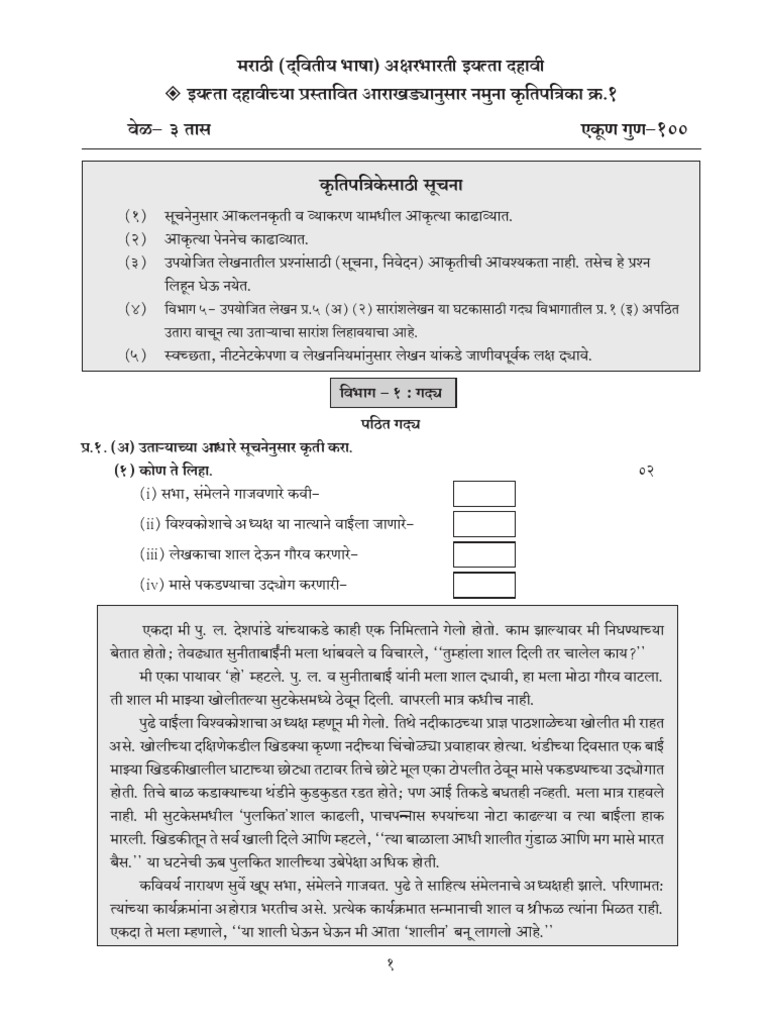 (४) विभाग ५- उपयोजित लेखन प्र.५ (अ) (२) सारांशलेखन या घटकासाठी गद्य विभागातील प्र.१ (इ) अपठित