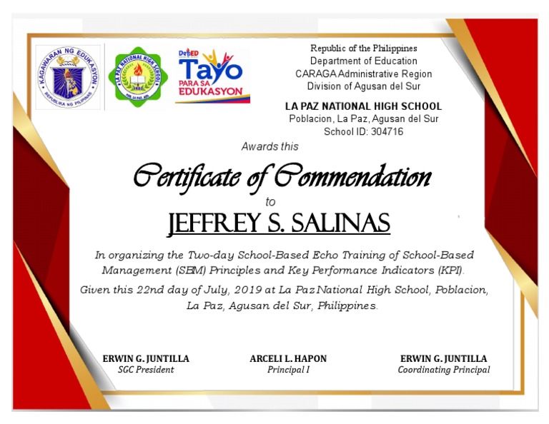 Given this 22nd day of July, 2019 at La Paz National High School, Poblacion,