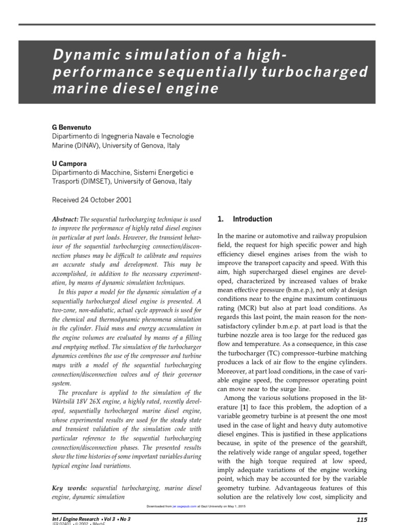 marine sequential turbocharged diesel engine [2] In previous studies the authors developed and