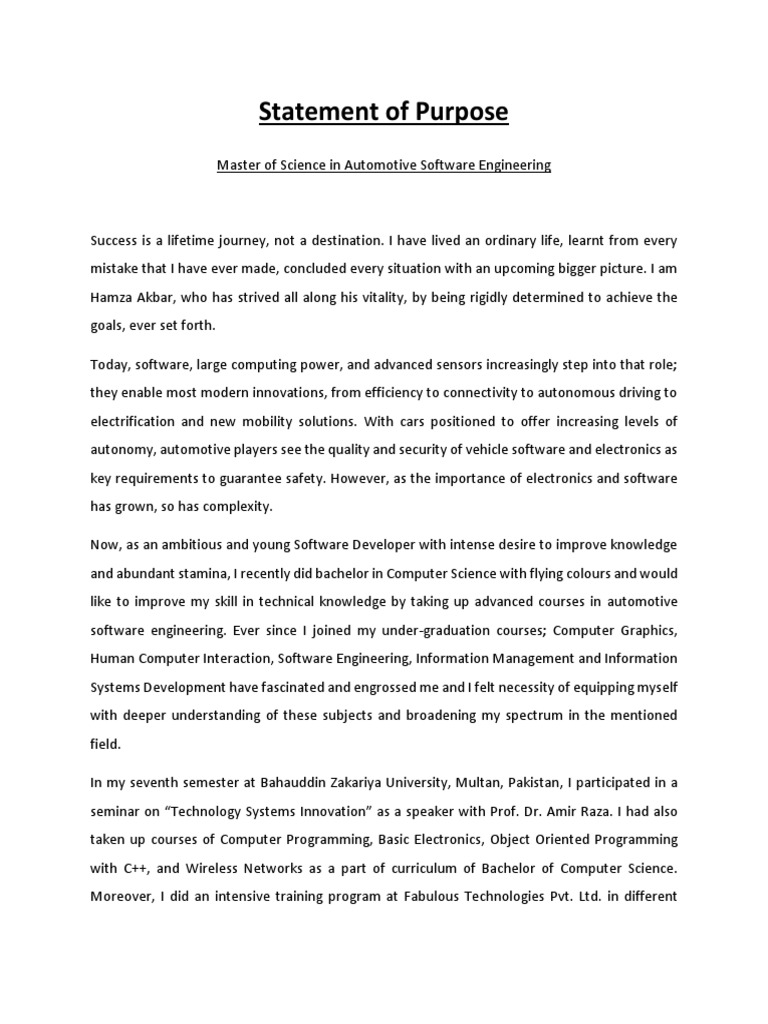 Software Engineering is to enhance my technical skills regarding automotive industry as well as