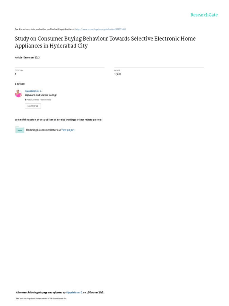 5. Geethanjali R, Assokumar.S, A Study on Consumer Buying Behaviour Towards Home Appliances in Salem City,