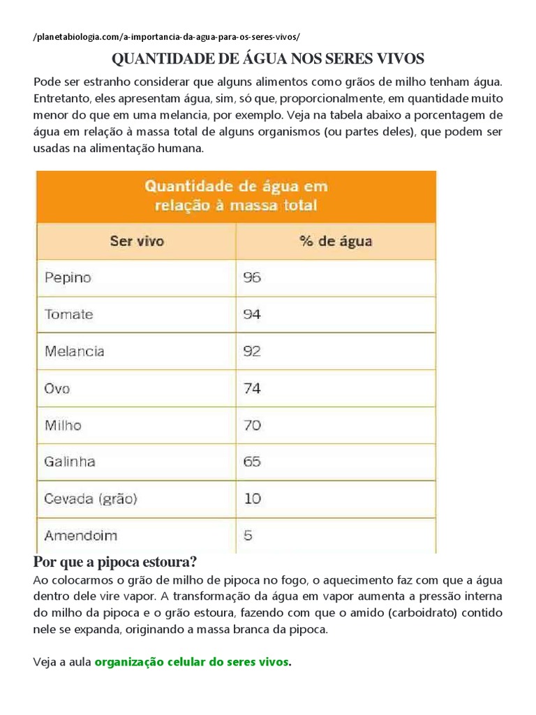 Não se esqueça de dizer o que achou da aula a importância da água para os seres