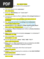 Rizal visited the famous cave where the Catholic 52) The lottery prize that Rizal won.