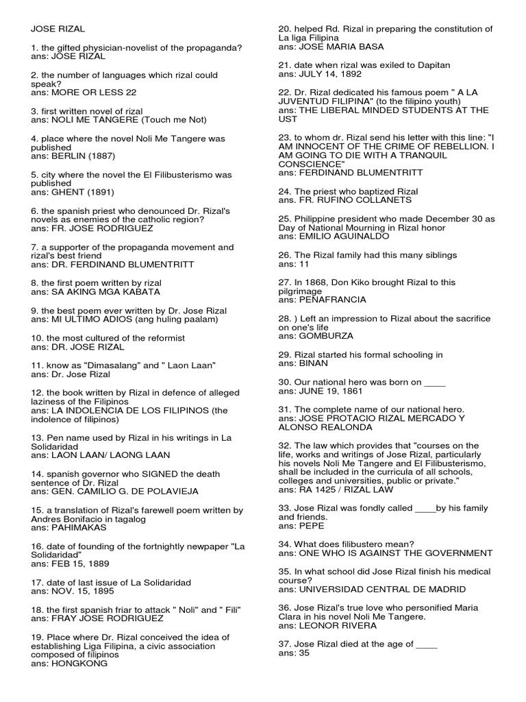 ans: JOSEFA 60. name of Dr. Jose Rizal's son