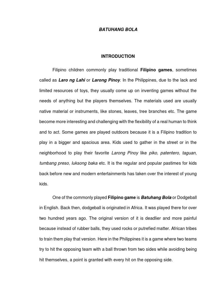 and to act. Some games are played outdoors because it is a Filipino tradition to