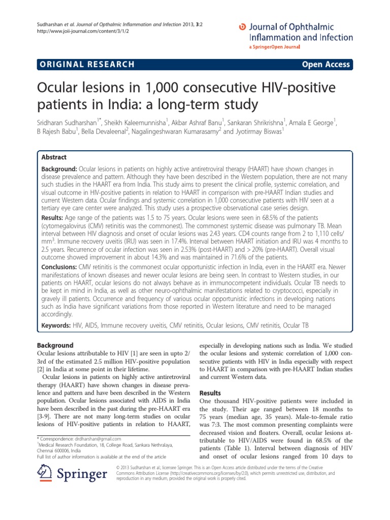 consecutive patients evaluated at a referral center. Am J Ophthalmol HIV-positive patients in India: a long-term study. Journal of Opthalmic