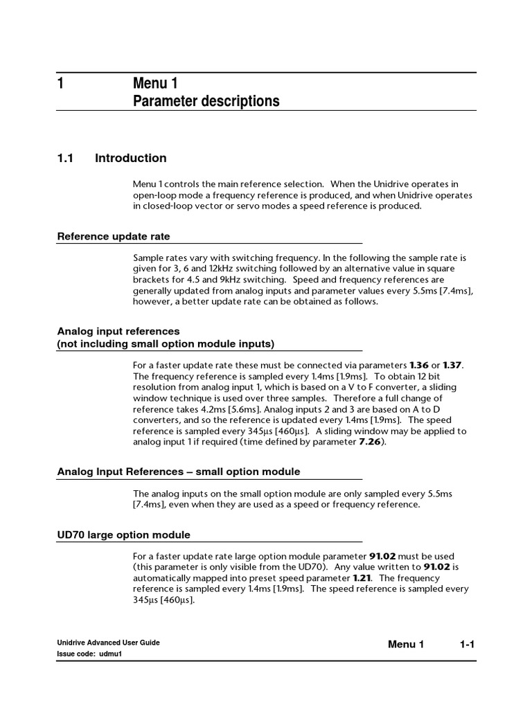 1-10 Menu 1 Unidrive Advanced User Guide
