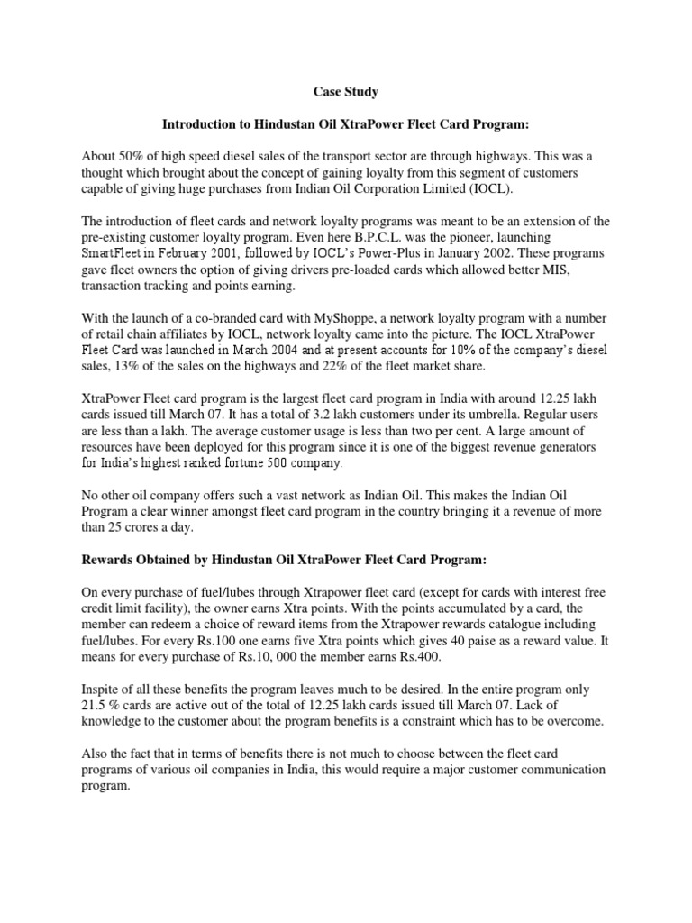 Introduction to Hindustan Oil XtraPower Fleet Card Program: