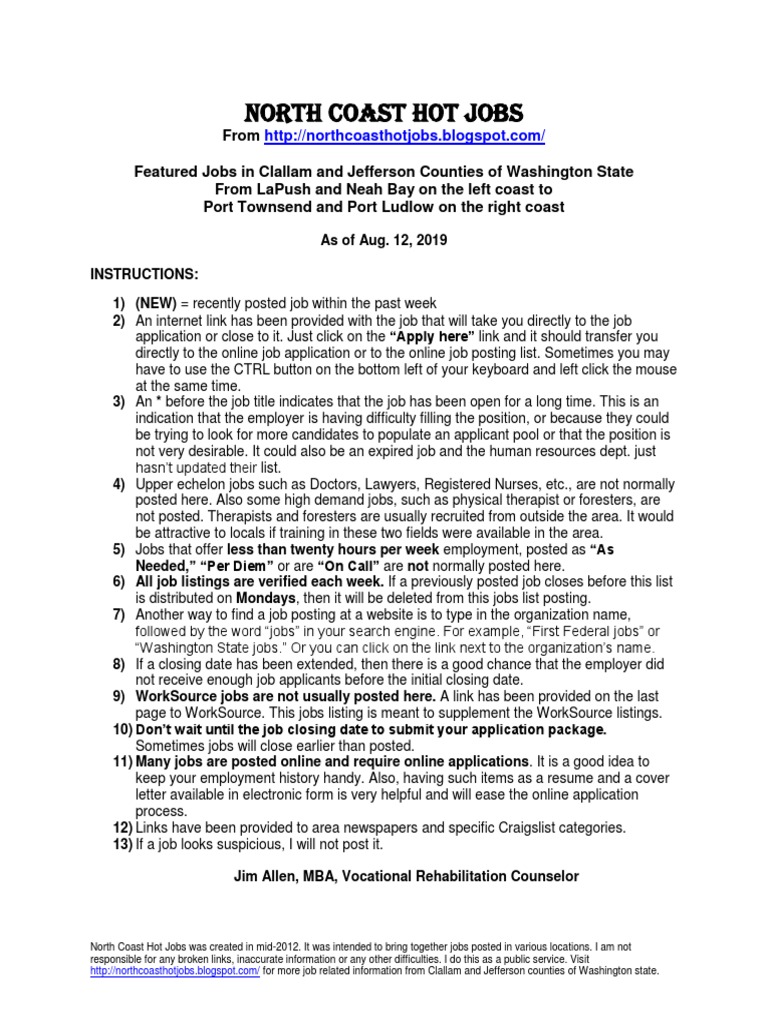 [Link] for more job related information from Clallam and Jefferson counties of Washington state.