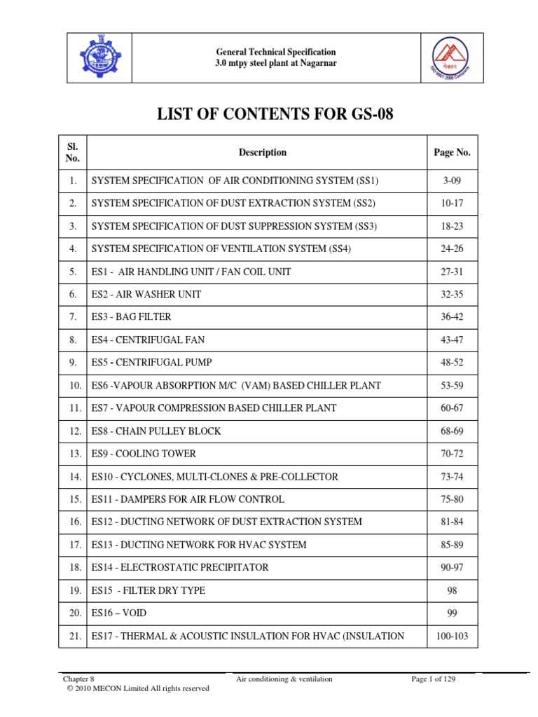 Following Indian Standards shall be followed for designing Air Conditioning System: