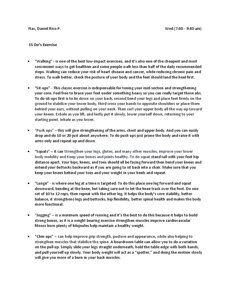15 Do’s Exercise