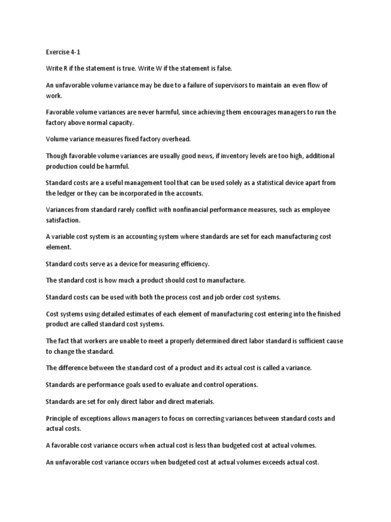 Principle of exceptions allows managers to focus on correcting variances between standard costs and