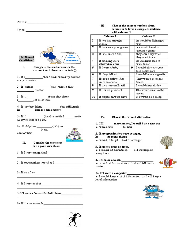 5.- If I____________(have) a casttle I_______invite IV. Choose the correct alternative