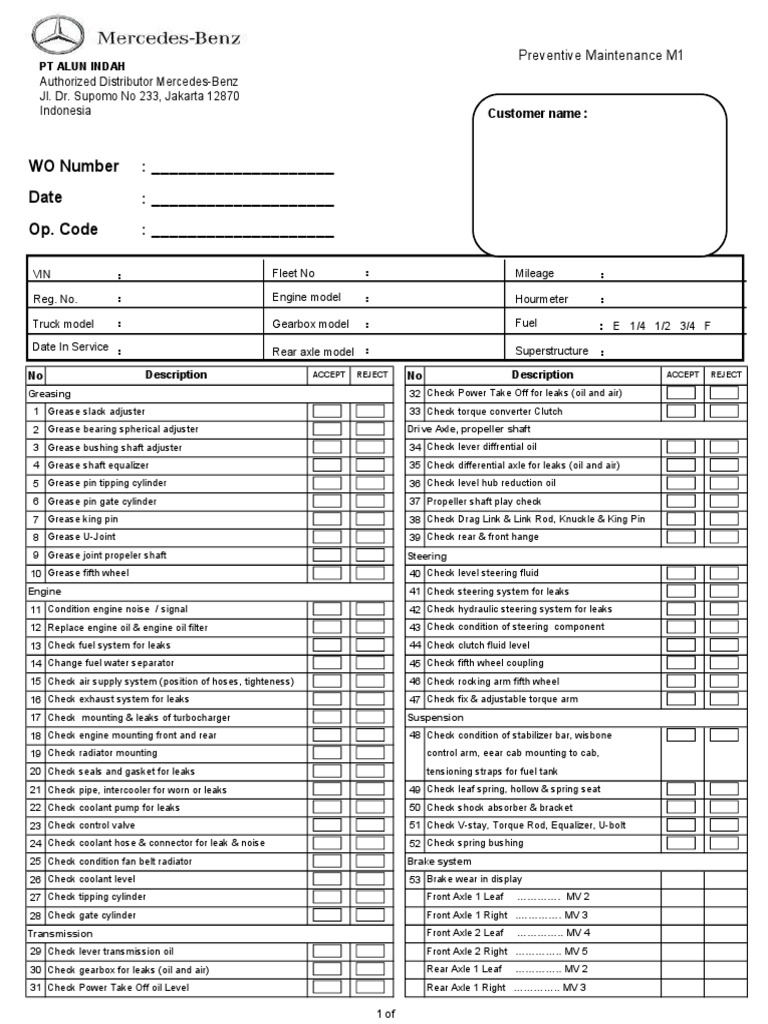 30 Check gearbox for leaks (oil and air) Rear Axle 1 Leaf ………….. MV 2