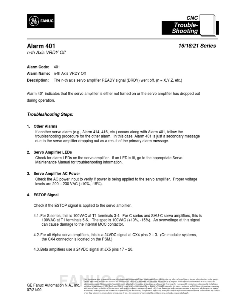 troubleshooting procedure for the other alarm. In this case, Alarm 401 is just a secondary message