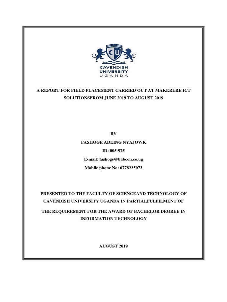 A REPORT FOR FIELD PLACEMENT CARRIED OUT AT MAKERERE ICT