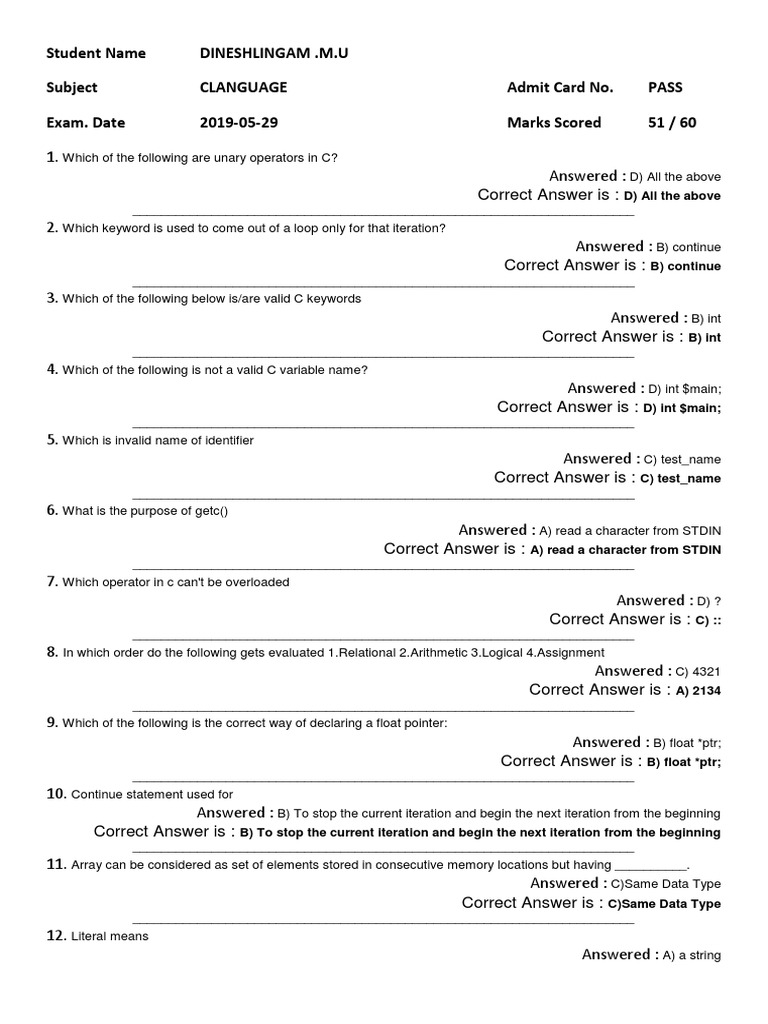Exam. Date 2019-05-29 Marks Scored 51 / 60