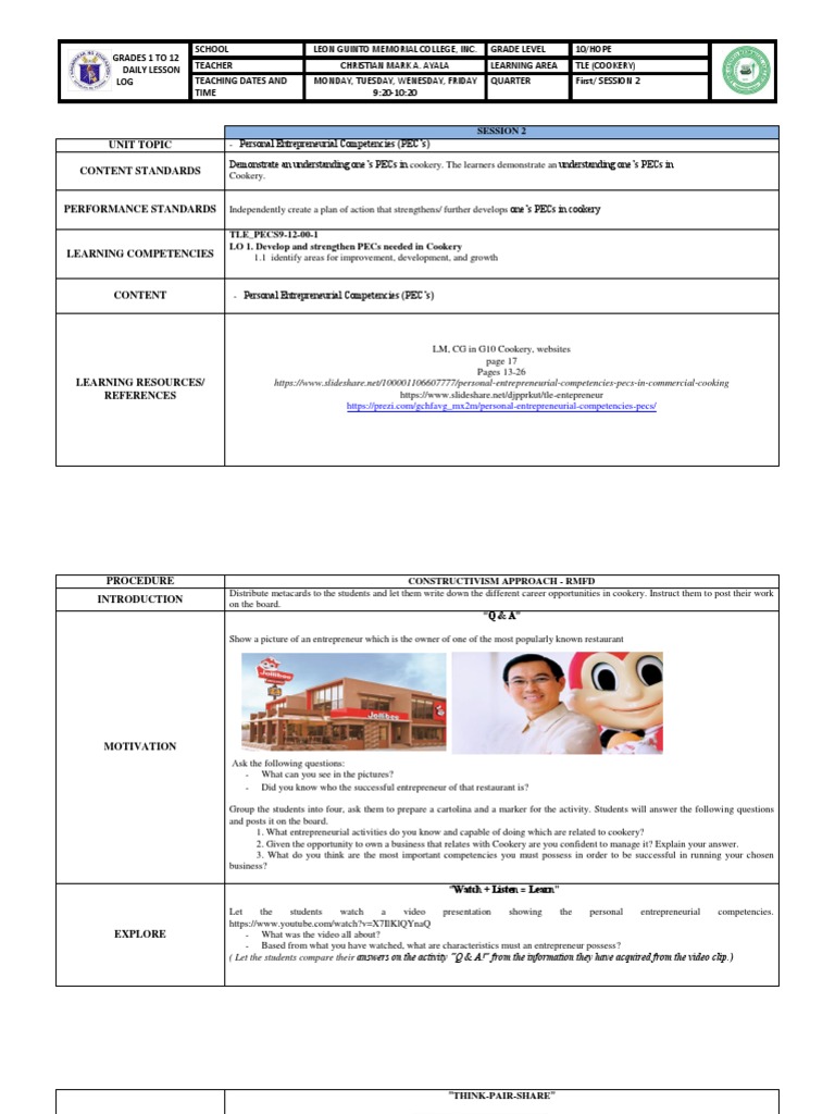 LEARNING RESOURCES/ https://www.slideshare.net/100001106607777/personal-entrepreneurial-competencies-pecs-in-commercial-cooking
