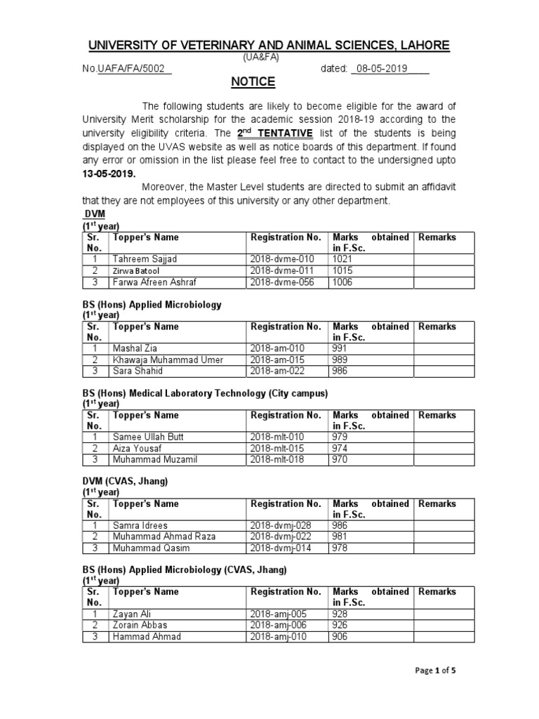 university eligibility criteria. The 2nd TENTATIVE list of the students is being