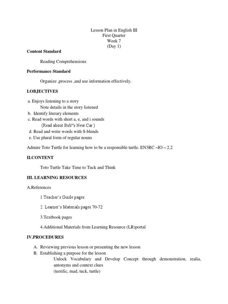 Lesson Plan in English III
