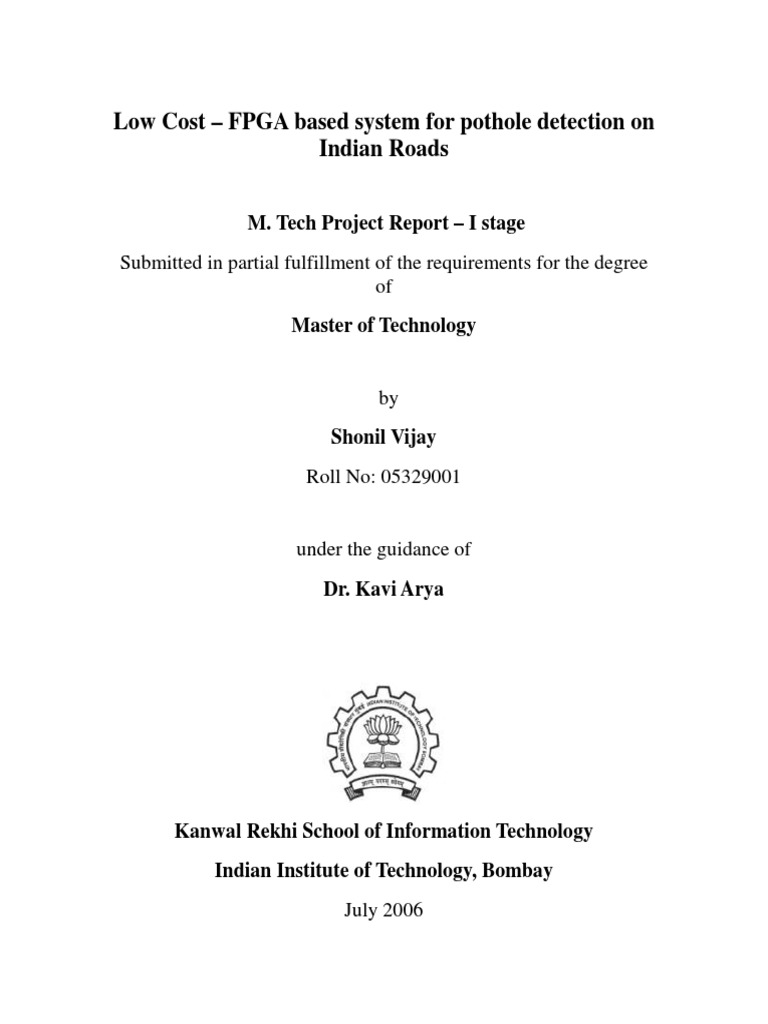 system over FPGA, to provide a solution of detection and avoidance of potholes in the
