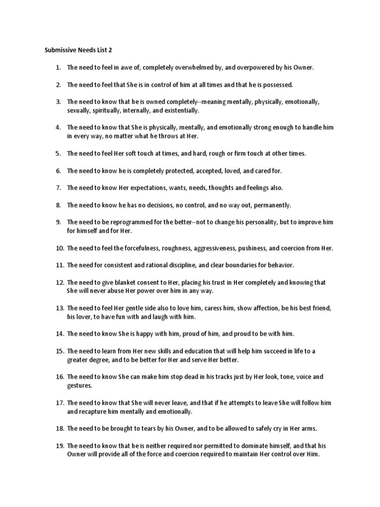 22. The need to know that his service pleases his Owner enormously and fulfills Her sexually,