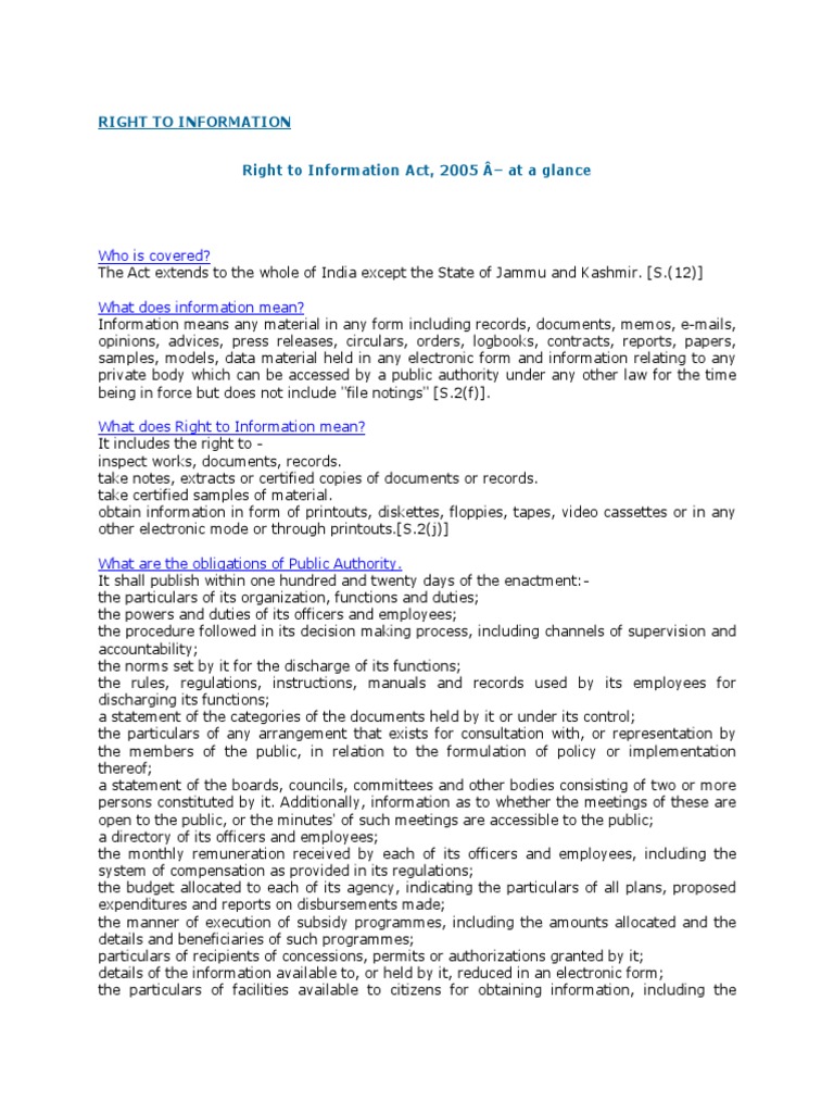 Right to Information Act, 2005 – at a glance