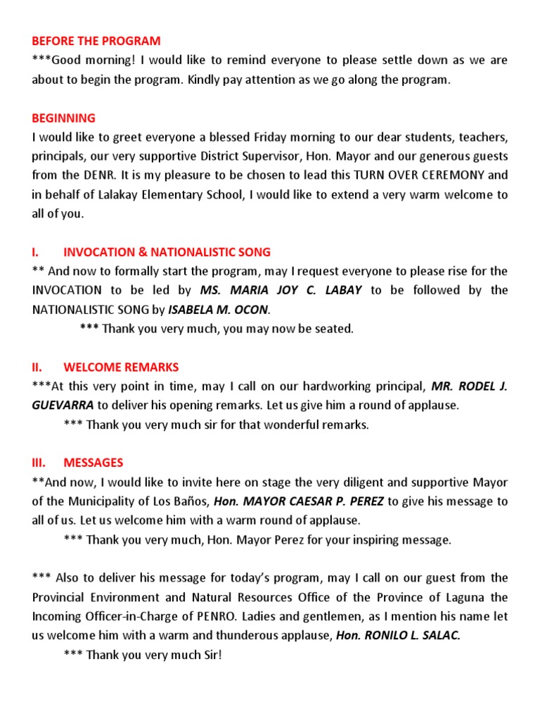 Ladies and gentlemen, honorable guests, in behalf of the Lalakay Elementary School and