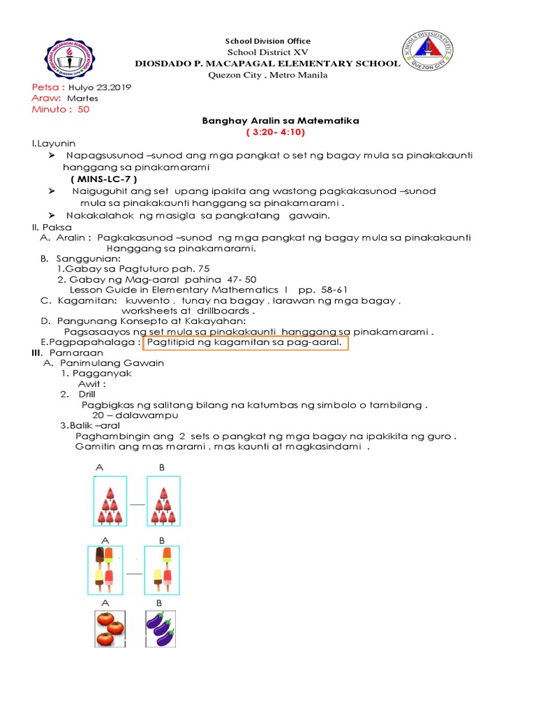 Banghay Aralin sa Matematika