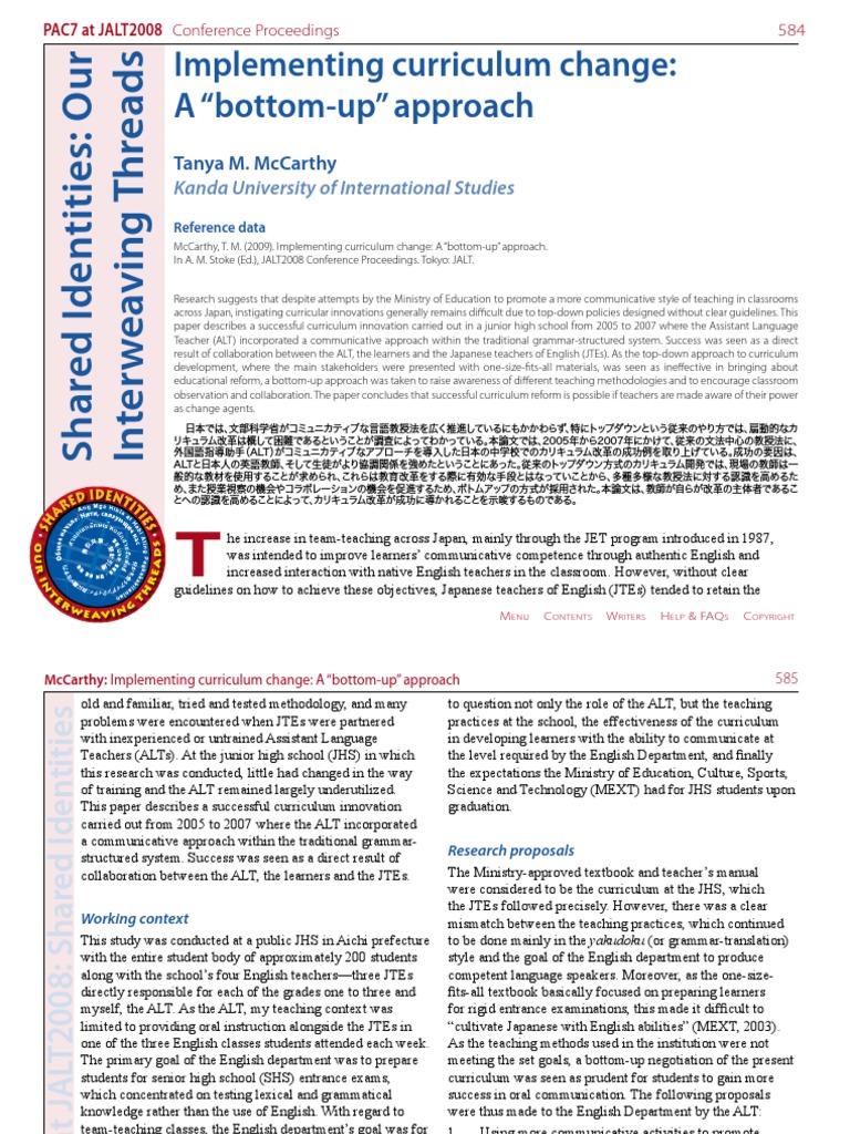 McCarthy: Implementing curriculum change: A “bottom-up” approach 586