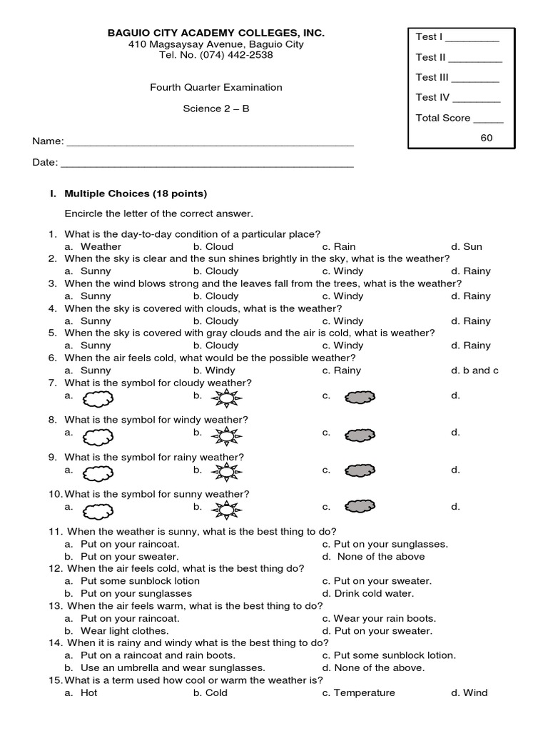 a. Sunny b. Cloudy c. Windy d. Rainy