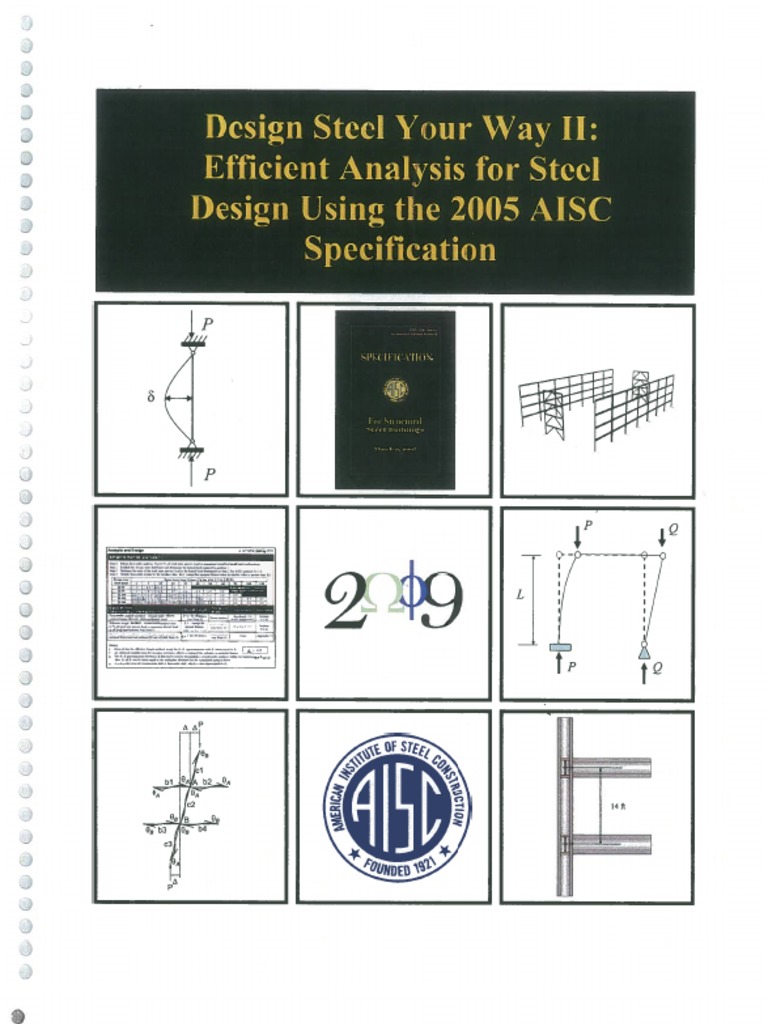 x » Bit), a = » Tui), ; a > > f « “2 ’ a a , ® » ’ , y a , Effective > 4 Length = = , Nomograph or if , Alignment Chart 20 for Braced Frame , fl t t , P = 3 , a o ‘American institute of Steel Construction 9Efficent Analysis for Stee! Design Using the 2008 AISC Specification Effective Length Factor + Sidesway Inhibited (Braced Frames) GB a xy» Ee Gaya Buckling vs. Nomograph fs,000(82.7) Kom Hes Fo 32 7266 : omogtanh toon NERe? roor I Saas eeaeece Sage pene petra wens ‘the results are close, oe QO reeset i ‘American Insitute of Stee! Construction 180 a eee eee eeeaaaas> > > > > » > > » > » > , » » » , , ' 1 ffclent Analysis for Steel Design Using the: 2008 AISC Specification Buckling vs. Nomograph K,-% FL 8 [9.000182.7) _ 4g TYP, 1002)V 460 Jr Nomepraph | won Mee & 2008 ‘The sete and oading re {arto satin the ‘At members oe a e ‘eration assumptions. T the resus re aut ciferet nt a Buckling of two story frame |’ |" P P| 1008 + 100f Almenbors on ‘wore an Pog = 1378 kips Sidesway Prevented ‘Ther seas ston ne American Instiute of Stee! Construction 18Efficient Analysis for Steel Design Using the 2005 AISC Speciation Buckling of two story frame ‘All members W8 x 24 Nomograph To Kae = 088 toon Ku ® 0.85 10.0f Elastic Bucking 2008 Keeper = 1.09) pet pare res sernn Konee® O77 Buckling of two story frame ! fate Pp p | 100% 1008 Atmembers wee 2008 P= 140 kips ‘Sidesway Permitted a . ‘American Insitute of Stee! Construction an OOOO OMA AAOADAOAAAODAMOOAOEficient Analysis for Stee Design Using the 005 AISC Sfecfeation {° Ir At members we oon BOT 0 nesters Buckling of two story frame P p | 1008 Amana 20.0 ft a a > > » » > > > > > > > » > » » » » » , , , , , , , , , ‘American Institute of See! Conetruction Buckling of two story frame 10.08 10.08 P= 242 kips 1008 P.,= 290 kipsEfficient Analysis for Stee! Design Using the 2008 AISC Specification ‘All members W8 x 24 — Both stories loaded, Ker = 3.43, Knee 242 — Upper story loaded, Kegpe = 261, Kiower= 2-61 — Lower story loaded, Rent Kine 238 a ‘American Insitute of Stee! Construction Buckling of two story frame Buckling of two story frame Nomograph x, pee = 179 Kona = 318, + Elastic Buckling compared to Nomograph —From Elastic Buckling, each load pattern results in a different critical buckling load. Nomograph | Koga” 179 Kier" 3.18® 1p Etfcient Anaiysis for Steel Design Using the 05 AISC Specification . . Buckling with Leaning Columns » > » » Re > auemn > » > > a i » » » » » » , , ’ , , , , , , , , , | American Institute of Steel ConstructionEfficient Analysis for Steel Design Using the 2008 AISC Specification Buckling with Leaning Columns Buckling with Leaning Columns -Nomogrept type equation for deeway united incinglening olins wk ‘el suan/2K)_(2),(0 eeai4-(, came (8) (2-0 66,6) \' Q represents the sum ofthe load on al of the leaning columns attributed to the frame P represents the sum of the load on all of the restraining columns attributed to the frame vm senrenrens i ‘American Institute of Stee! Construction 802202 O2 2202022022 OHOO882882088280288082808> 1p Etfcient Analyas for Stee! Design Using the > > > > > > 2005 AISC Specification Buckling with Leaning Columns Nolo on ing cuir ‘O-0,k=20 i bade on sting nd teonng cure | orenke27 (ore combinations OP=2K= 325 QP =10,K=607 What would you do there wore no load eg sof ero) M=Pa+08 Arerasos ‘Tht aye a sokten nse! a American Insitute of Steet Construction HrEffient Analysis for Steel Design Using the 2008 AISC Specification Buckling with Leaning Columns YT? cuumsctonesanat to t ceertncen aes rod t (P+9Q)= eof i= Pa+0s “rasa tldon ta ie Buckling with Leaning Columns a cara tae P ia modted nomographefecve length tan ke poe (k.) American Institute of Steel Construction Ae ROAM AAO OAAAOOAAMAAABAMAMAAAABARADAD> > > » > » » ’ > > , » , , , , , , , , ficient Analysis for Stee! Design Using the 005 AISC Specification Buckling with Leaning Columns WEL = * Solve both equations for fo2 Effective Length Factor + Problems with nomograph ~ Real structures rarely satisfy assumptions + Leaning columns * Stiffness parameters not usually the same + All columns don't buckle simultaneously + Different end conditions means //L is not a good measure of stiffness ata joint + Columne may not behave elastically ae i American insttute of Stee! Construction 189Efficient Analysis for Stee! Design Using the: 2008 AISC Specification Stability + What approach does your software use? > Stability + What approach does your software use? ~ Calculates the elastic buckling loed — Calculates K based on the alignment chart equations — Requires K as an input variable for each column. — Assumes a K based on a default Assumes all K = 1.0, ne a ae ‘American Institute of Steel Constuction aaaaneaae® Etfcient Analysis for Steel Design Using the: 1p 2005 AISC Specification AISC 360 C1.1 Stability Design Requirements “Stability shall be provided forthe structure as @ wnole and for each ofits elements. Any method that considers the influence of: 1. second-order ete, 2. flexural, shear and axial deformations, 23. geomet imacrtections, ond 4, member sitfness reduction due to residual stresses on the stabilty of the structure and its elements is permitted.” a ia Geometric Imperfections + Out-Of-Straightness asus = 11000 + Out-Of-Plumbness pom Coen tensor olerance: i: = 1/800 e-——— . > » > > > > » » > » » , > , , , , , , , , , , ‘American Institute of Steel Construction botEfficient Analysis fr Stee! Design Using the 2005 AISC Specification Geometric Imperfections * Column Strength Equations Geometric Imperfections + Out-Of-Plumbness <-oom <-oom eed Hrer 002 F o00xr, +) L 1 Toor, Toone, +F) al vad Level Top Let 2 Net iv own ee « e e e « « « « « « « « « « « q « « « « ‘American Institute of Steel Constuctionficient Analysis for Steel Design Using the: 1008 ASC Specification + Out-Of-Plumbness Geometric Imperfectio