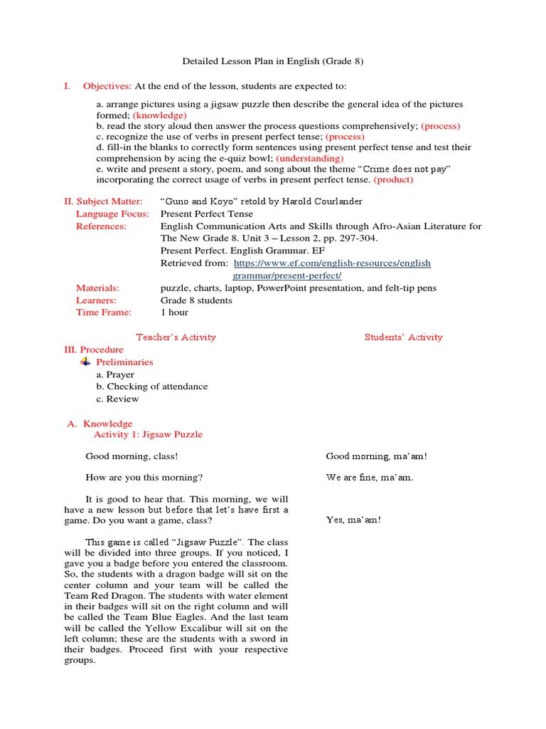 assigned activity. In doing the activity, the groups must observe the proper use present