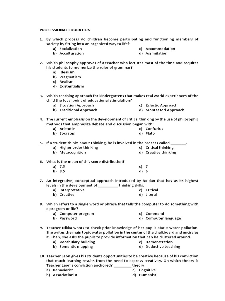 Professional Education Answer Keys